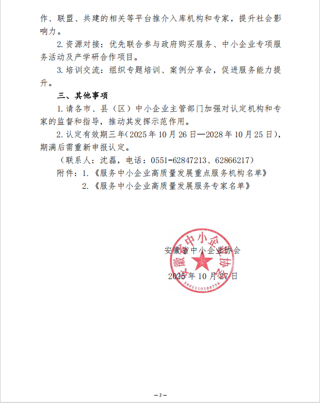 为贯彻落实工业和信息化部等17部门《关于开展2025年“一 起益企”中小企业服务行动的通知》(工信厅联企业函〔2025〕 50 号)精神,安徽省中小企业协会于近日公布了安徽省服务中小企业高质量发展重点服务机构名单,安徽省信达商标事务有限责任公司位列其中。
